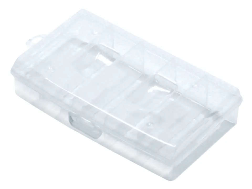 Przezroczyste pudełko narzędziowe z zamknięciem, wykonane z tworzywa sztucznego. Wyposażone w 5 przegród o jednakowej szerokości, umożliwiających porządkowanie drobnych elementów. Ergonomiczna rączka pozwala na wygodne przenoszenie z miejsca na miejsce.