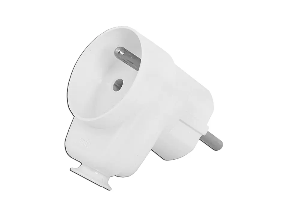 Wtyczka WT-16UG kątowa z gniazdem, biała.