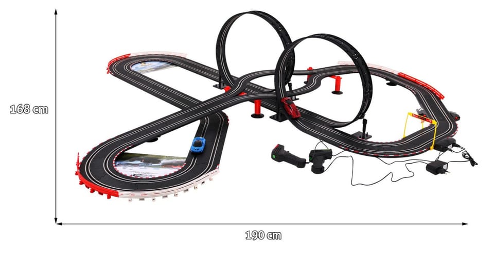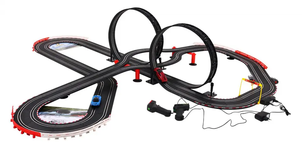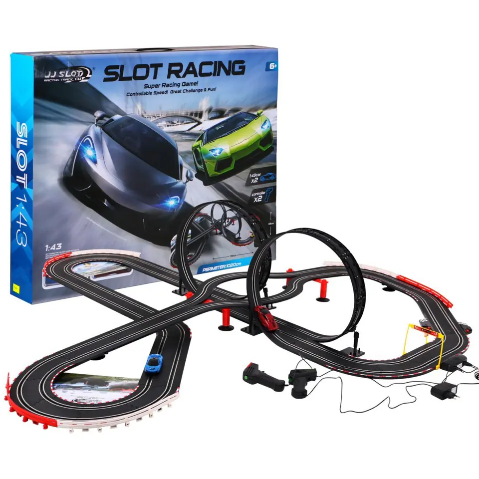 10-metrowy Tor wyścigowy dla dzieci 6+ Piloty + 2 autka 1:43 + Światła + 2 pętle 360