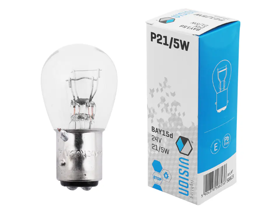 Wysokiej jakości halogenowa żarówka samochodowa P21/5W. Żarówki tego typu pełnią funkcję świateł pozycyjnych lub świateł STOP w samochodach osobowych i dostawczych.