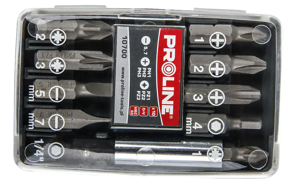10700 Zestaw końcówek bitów 1/4 cala, 10 elementów, Proline