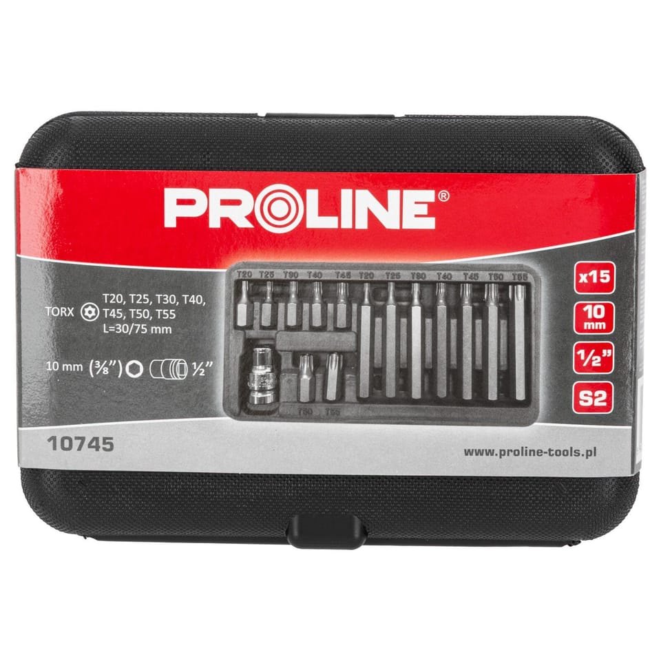10745 Końcówki, bity, 3/8 cala Torx Security T20-T55, L=30/75mm,15 elementów