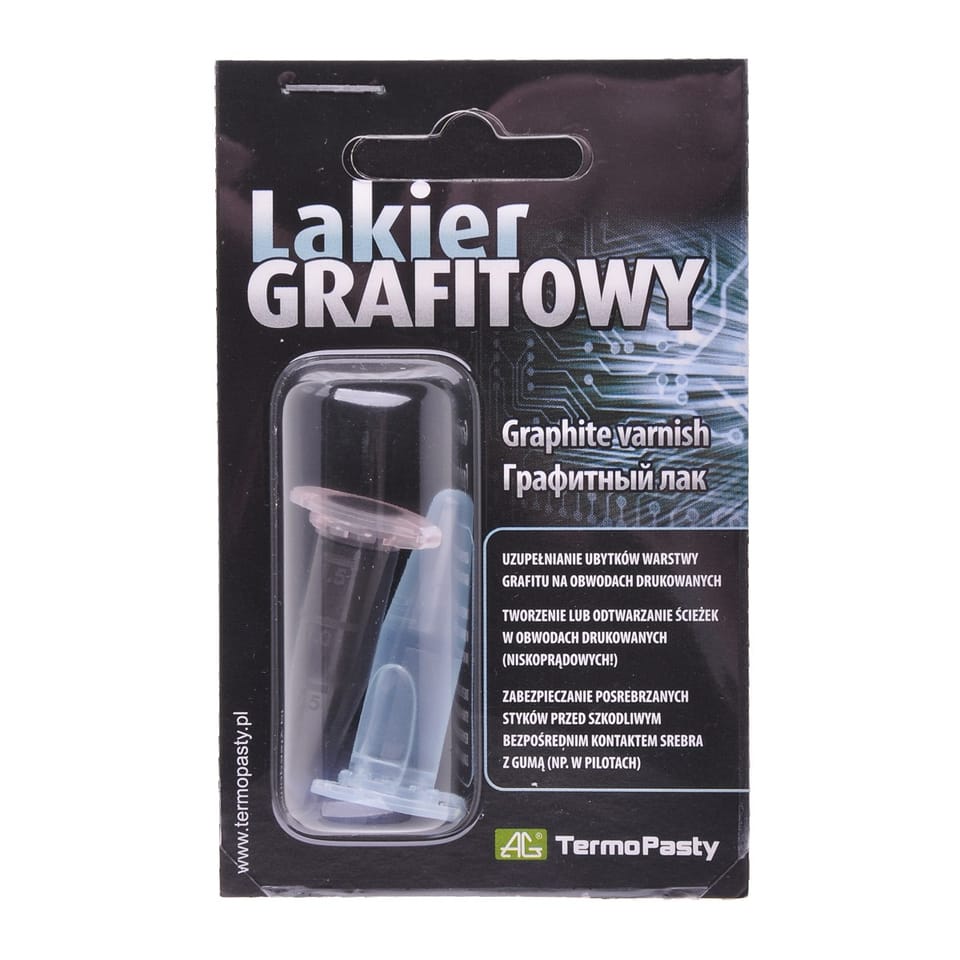 Produkt przeznaczony do naprawy płytek pokrytych grafitem np. w pilotach i kalkulatorach. Nadaje się również do zwierania mostków i naprawy przerwanych ścieżek. Zestaw zawiera dwie fiolki (lakier grafitowy i rozpuszczalnik).