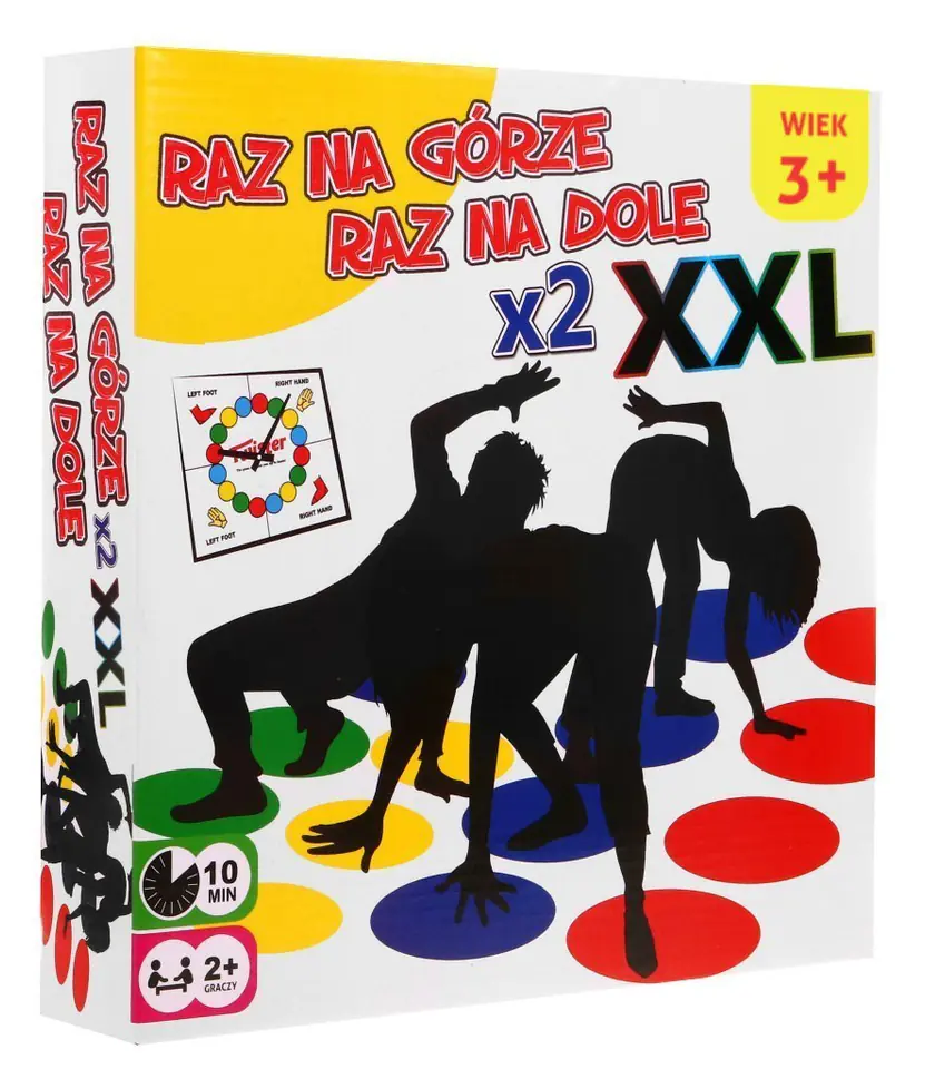 - tarcza ze wskazówką, - 2 duże maty do gry - można je łączyć ze sobą, - kolorowe opakowanie idealnie nadające się na prezent.
