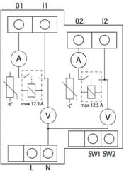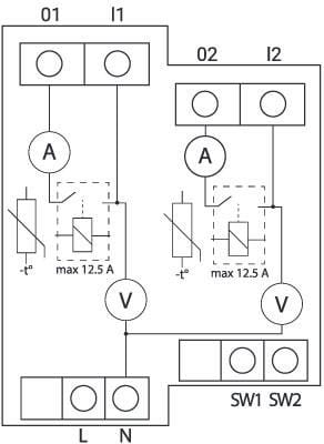 Maks. prąd przełączania AC16 A na kanał, 25 A ogółem