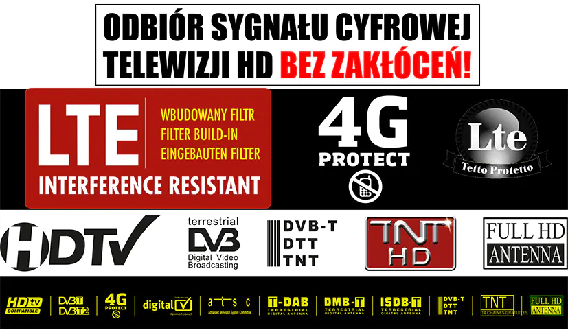Nowa seria anten BLOW wyposażona została w filtr LTE, który umożliwia eliminowanie zakłóceń sygnału naziemnej telewizji cyfrowej pochodzących od nadajników lub urządzeń wykorzystujących technologię LTE. Zapewnia to zastosowany układ SMT 4G PROTECT który skutecznie chroni przed zakłóceniami interferencyjnymi.