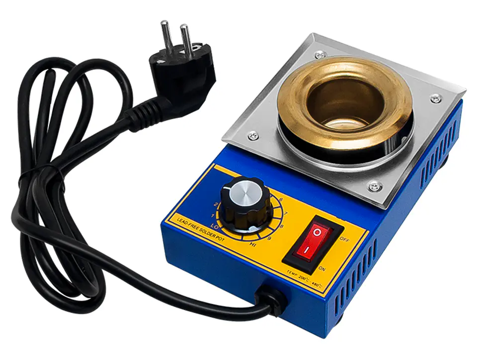 Urządzenie do podgrzewania lutu bądź kalafonii, cynowania elementów. Prosty w obsłudze. Naczynie wykonane ze stali nierdzewnej.