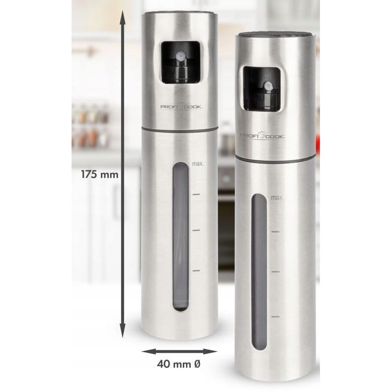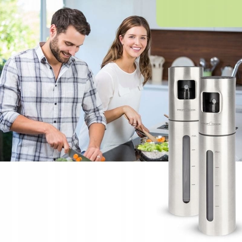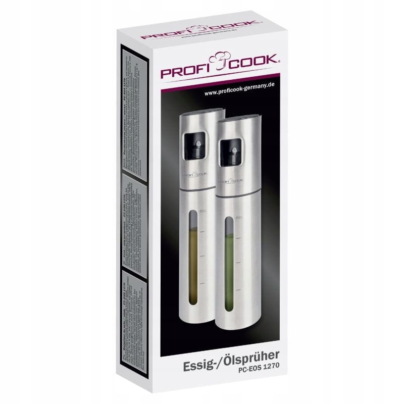 DOZOWNIK DO OLIWY OLEJU OCTU SPRYSKIWACZ ATOMIZER ROZPYLACZ 100ml STALOWY NAJWYŻSZEJ JAKOŚCISPRYSKIWACZ, ROZPYLACZDO OLEJU / OLIWY / OCTURENOMOWANEJ FIRMY PROFICOOKMODEL: PC-EOS 1270Nasz dozownik to doskonałe narzędzia kuchenne. Jest wielokrotnego użytku i wielofunkcyjny.Spray do oleju napełnij oliwą z oliwek, wodą, octem, sosem sojowym, sokiem z limonki, lemoniadą, sherry marsala itp., które mogą być szeroko stosowane podczas przygotowywania sałatek, smażenia, pieczenia, pieczenia, gotowania, marynowania, grillowania.Odkryj świat intensywnych smaków i niewymagającej wysiłku precyzji dzięki zestawowi do octu i oleju firmy ProfiCook. To połączenie funkcjonalności i elegancji przenosi doznania kulinarne na nowy poziom. Zestaw zawiera dwie wysokiej jakości butelki z atomizerem, każda o pojemności 100 ml.Dzięki konstrukcji z wysuwanym przyciskiem i inteligentnemu mechanizmowi pompki precyzyjne dozowanie jest dziecinnie proste. Nie traci się ani kropli, a przedawkowanie nie psuje smaku.Skala i okienko kontrolne na butelkach umożliwiają precyzyjną kontrolę. Składany silikonowy lejek ułatwia napełnianie. Czy to na grillach, piknikach czy spotkaniach towarzyskich. Z łatwością dodaj doskonały akcent smaku do swoich potraw. Zestaw z rozpylaczem do octu i oleju stanie się esencją Twojej kulinarnej podróży – precyzja, estetyka i przyjemność w jednym. NAJWAŻNIEJSZE ZALETY ZDROWSZE GOTOWANIE - Mniejsza ilość oleju oznacza mniej kalorii w Twoich posiłkach. DOKŁADNY ROZPYLACZ - Każde użycie gwarantuje dokładną i równomierną ilość oleju lub octu, bez marnotrawstwa i bałaganu. WYGODNE UŻYTKOWANIE - Ergonomiczny uchwyt i lekka konstrukcja zapewniają łatwą i komfortową obsługę. OSZCZĘDNOŚĆ PRODUKTU - Zmniejszone zużycie produktu. Oszczędzasz na zakupach i dbasz o planetę. UNIWERSALNE ZASTOSOWANIE W KUCHNI - Może być używany do aplikacji różnego rodzaju olejów, octów, a nawet wody. OPTYMALIZACJA GRILLOWANIA - Zapewnia, że mięso i warzywa są soczyste i pełne smaku. Minimalizuje ryzyko przypalenia. WSZECHSTRONNE ZASTOSOWANIENiezależnie od tego, czy chcesz dodać oliwę do sałatki, olej na patelnię, czy ocet do marynat, nasz spryskiwacz sprosta każdemu zadaniu.Przyda się zarówno w kuchni jak i podczas letniego grillowania na ogrodzie.Dozownik zastosować można do:olejuoliwyoctumarynatwodydelikatnych środków czystościi wiele, wiele innych ... ZDROWE GOTOWANIEKontrola nad ilością dodawanego tłuszczu pozwala na przygotowanie lżejszych i zdrowszych wersji ulubionych potraw. Jest to szczególnie ważne dla osób dbających o dietę lub chcących zmniejszyć kaloryczność swoich posiłków. Kontrola nad spożywanymi kaloriami Ograniczenie ilości tłuszczu w diecie PRECYZYJNY ROZPYLACZDzięki dokładnemu rozpylaczowi masz pełną kontrolę nad ilością używanego oleju, octu, czy oliwy. Technologia rozpylania zapewnia cienką, równomierną mgiełkę, która pokrywa jedzenie bez przesadnych przesyceń czy suchych miejsc. Produkt został odznaczony certyfikatem FOCUS - TEST DEUTSCHLANDS BESTECertyfikat TEST DEUTSCHLANDS BESTE został przyznany na podstawie badań przeprowadzonych przez „Germanys best household electronics”. W ramach testu porównane zostały produkty z ponad 20 000 marek z 274 segmentów rynkowych.Celem wyróżnienia „Focus” jest wskazywanie produktów cieszących się największym uznaniem konsumentów. Certyfikat przyznany jest na podstawie badań niemieckiego rynku i potwierdza wysoką jakość produktów a także świadczy o dużym zaufaniu konsumentów i renomie marki.slimtex