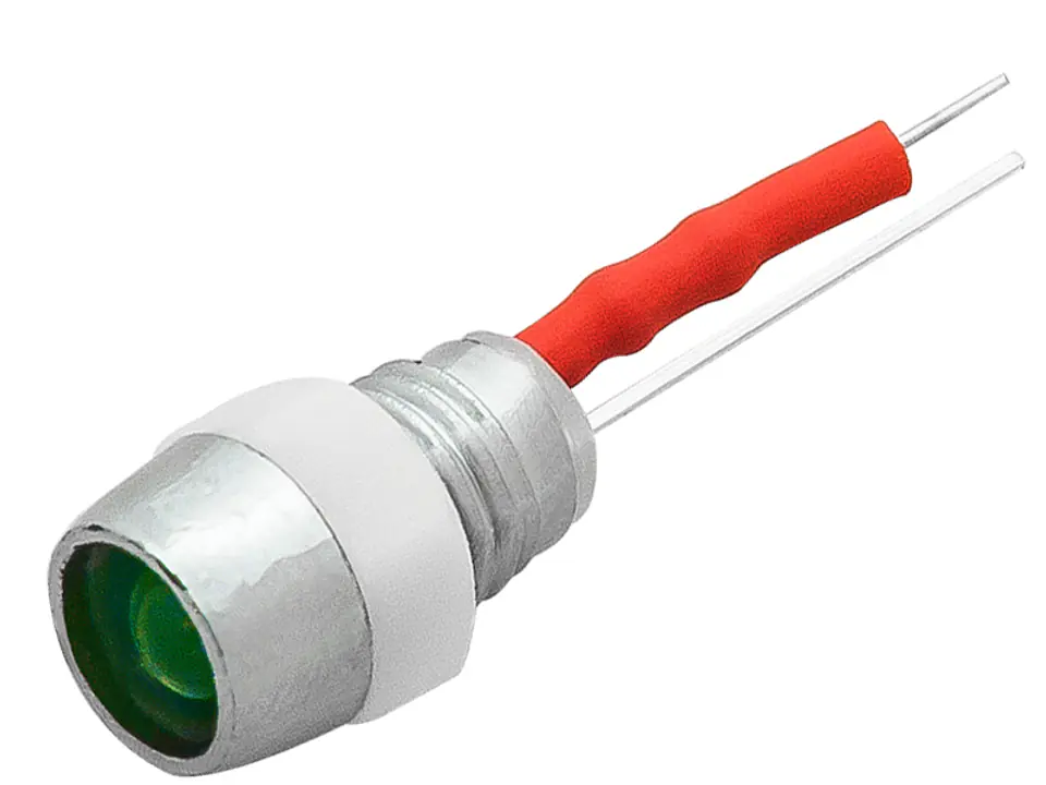 Kontrolka z matową diodą LED o zielonej barwie światła wraz z przewodem.