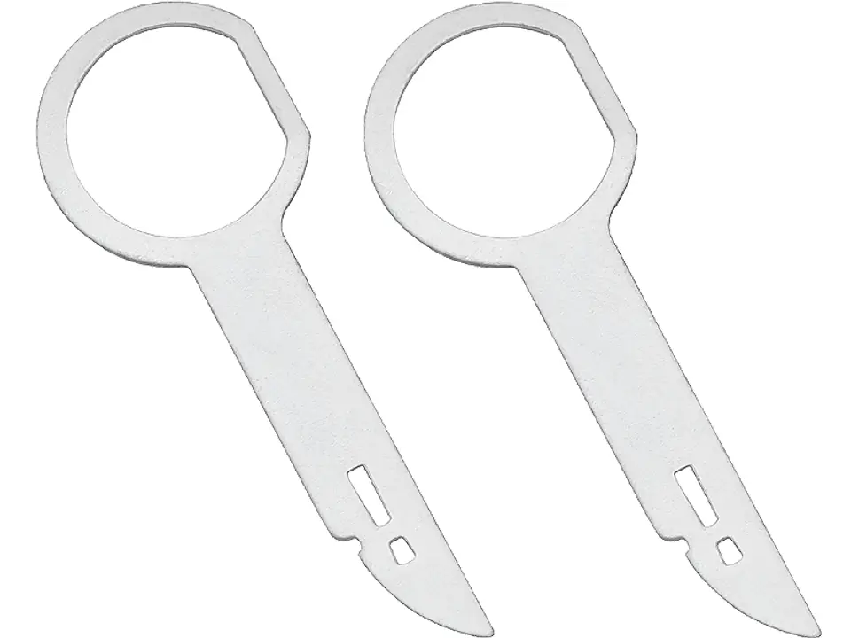 Zestaw dwóch wysokiej jakości kluczy przeznaczonych do demontażu radia w samochodzie. Klucze są kompatybilne z radiami marki VW, AUDI, MERCEDES. Pozwalają one na szybkie i łatwe wyciągnięcie radia bez uszkodzenia pozostałych elementów samochodu. Użytkowanie kluczy jest niezwykle proste, a czas wyjęcia urządzenia za ich pomocą zajmie zaledwie kilka sekund.