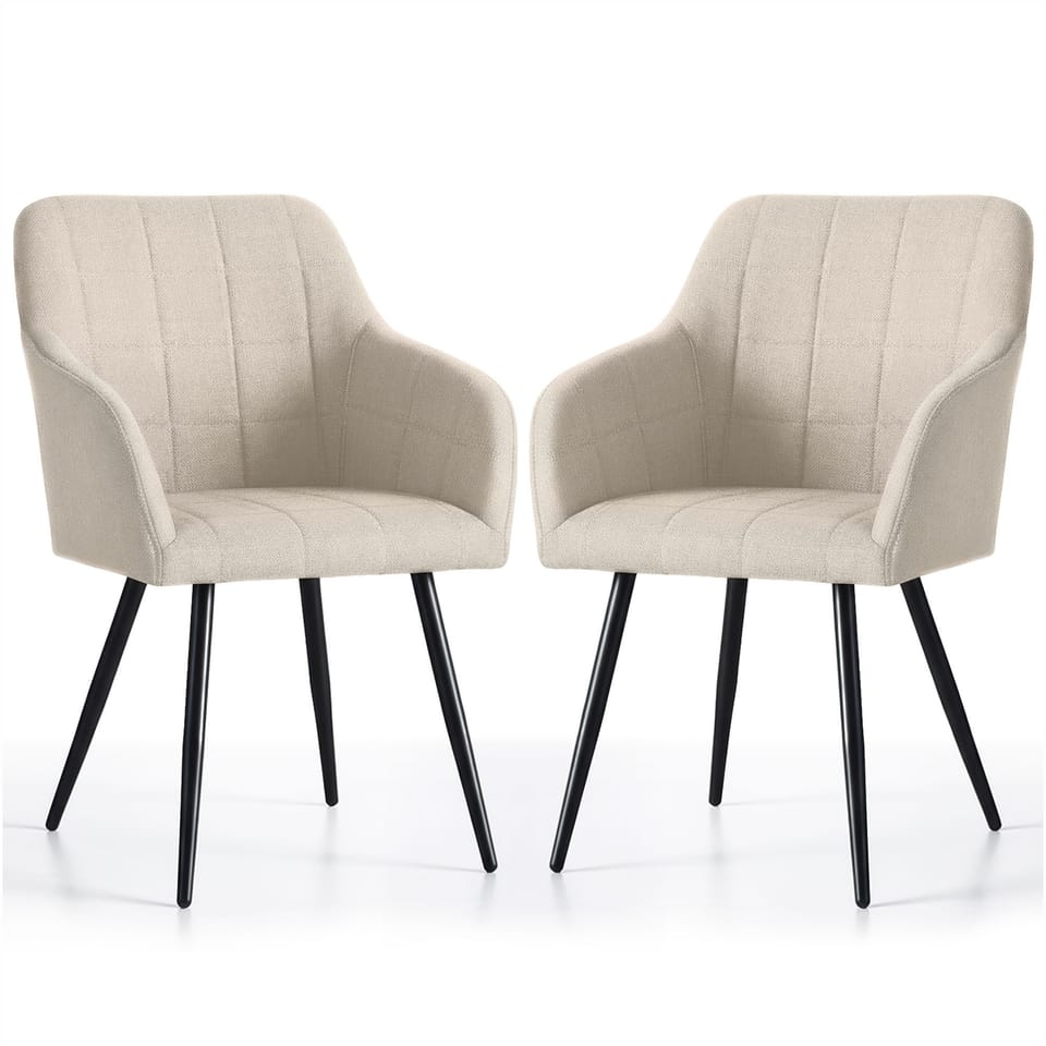 2x Krzesło tapicerowane z przeszyciami kwadratowymi Beżowe LUXANO Czarne nogi tkanina Lumos
