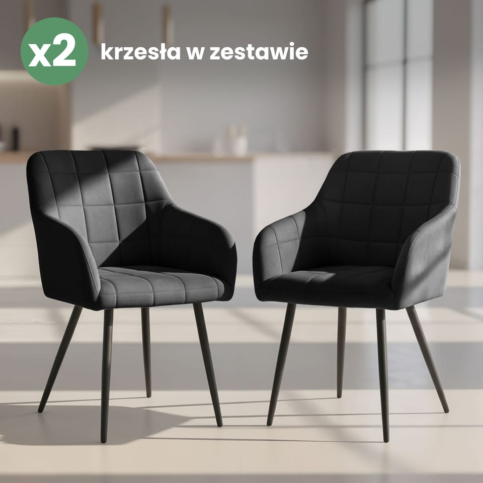2x Krzesło tapicerowane z przeszyciami kwadratowymi Czarne LUXANO Czarne nogi