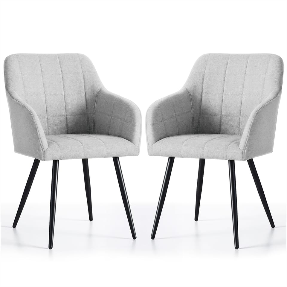 2x Krzesło tapicerowane z przeszyciami kwadratowymi Jasny Szary LUXANO Czarne nogi tkanina Lumos