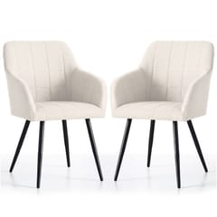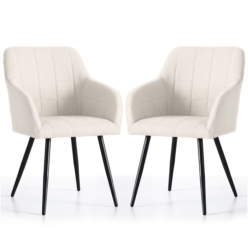 2x Krzesło tapicerowane z przeszyciami kwadratowymi Kremowe LUXANO Czarne nogi tkanina Lumos