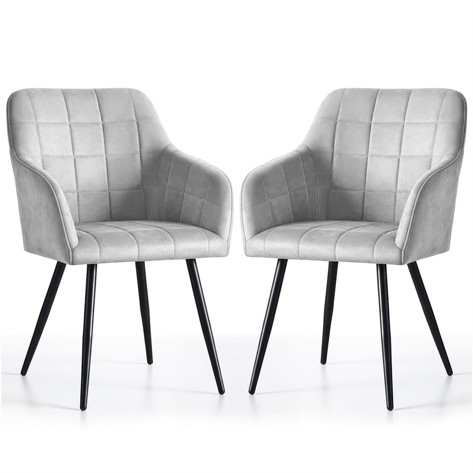 2x Krzesło tapicerowane z przeszyciami kwadratowymi Szare LUXANO Czarne nogi