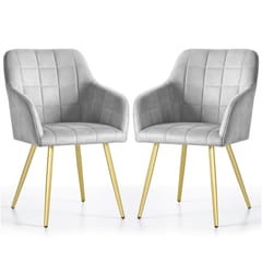 2x Krzesło tapicerowane z przeszyciami kwadratowymi Szare LUXANO Złote nogi