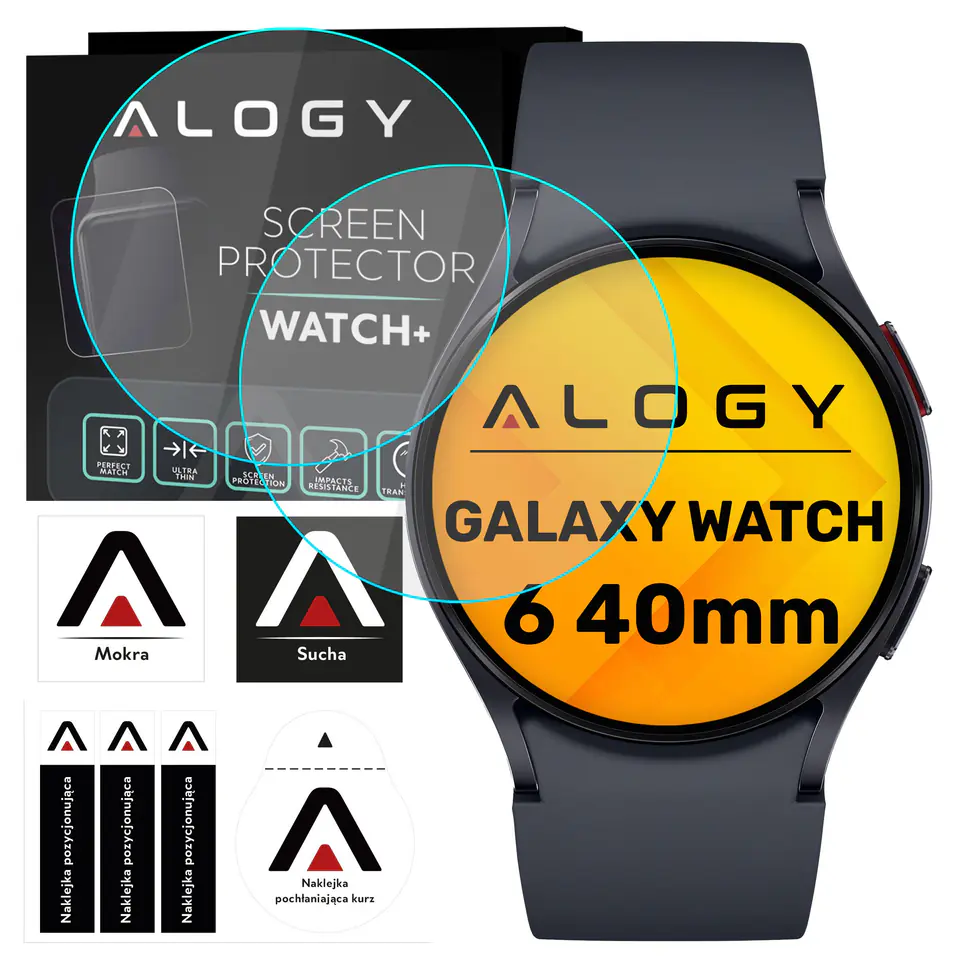 - Zestaw zawiera: 1x Szkło hartowane 9H Screen Protektor Watch+, 1x Ściereczka morka, 1x Ściereczka sucha, 1x Zestaw naklejek