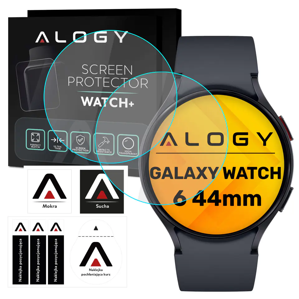 - Zestaw zawiera: 1x Szkło hartowane 9H Screen Protektor Watch+, 1x Ściereczka morka, 1x Ściereczka sucha, 1x Zestaw naklejek