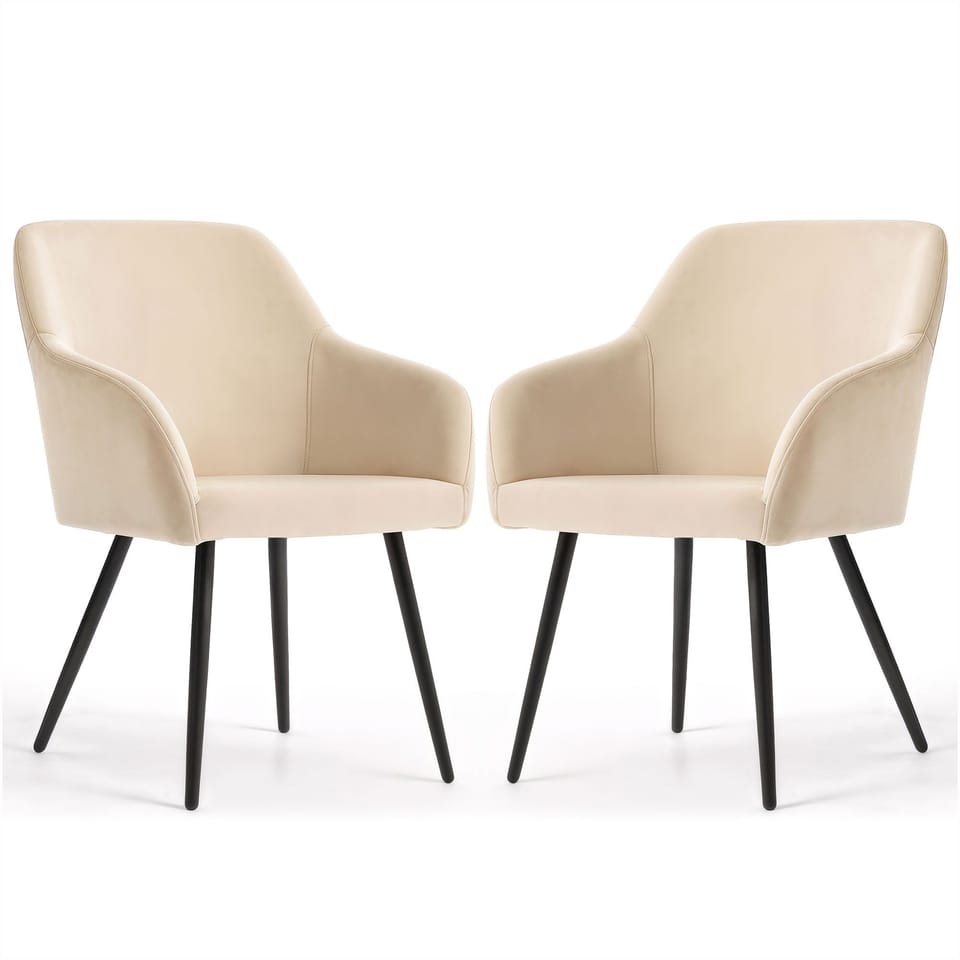 2x Welurowe krzesło tapicerowane gładkie Beżowe ESTELLE Czarne nogi