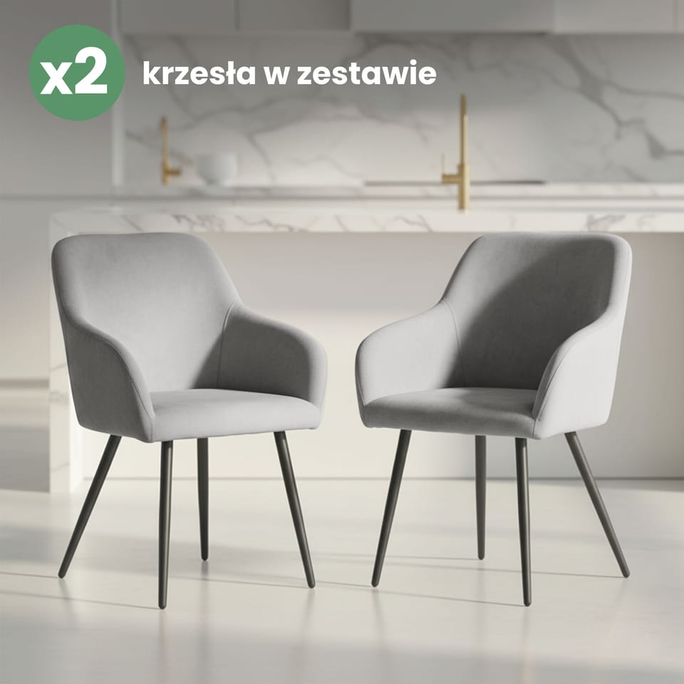 2x Welurowe krzesło tapicerowane gładkie Szare ESTELLE Czarne nogi