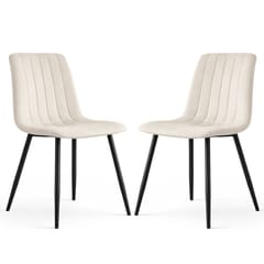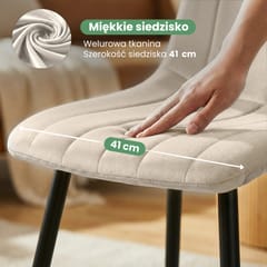 2x Welurowe krzesło tapicerowane pikowane Beżowe LIVO Czarne nogi