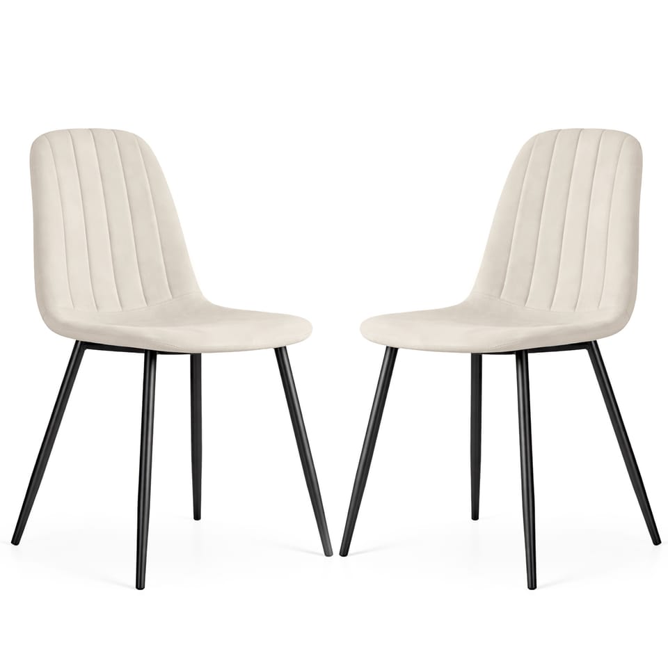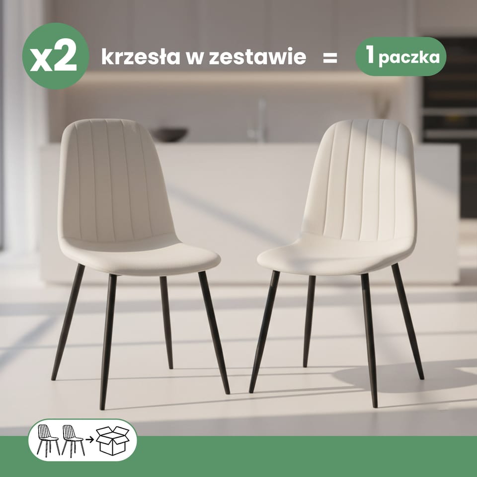 2x Welurowe krzesło tapicerowane pikowane Beżowe LUMO Czarne nogi