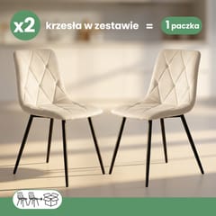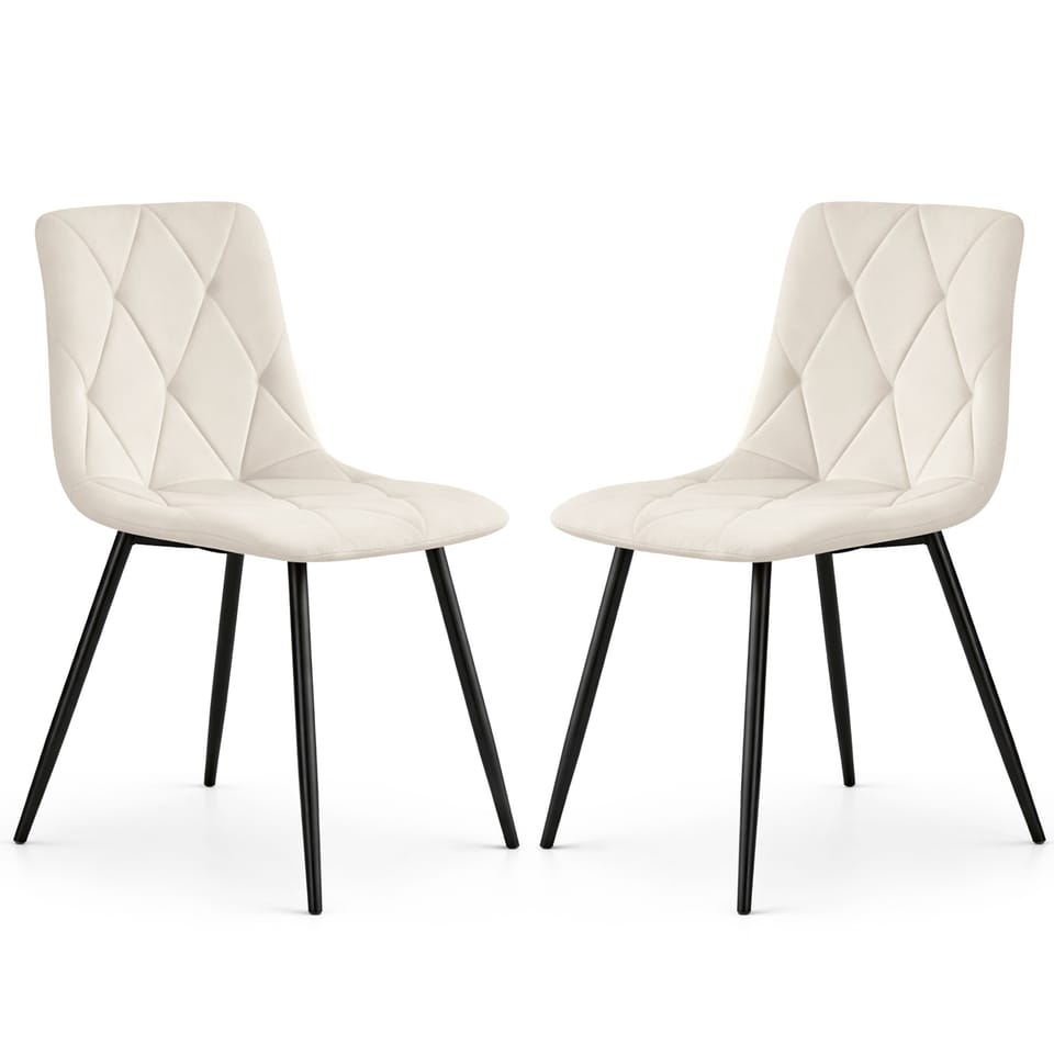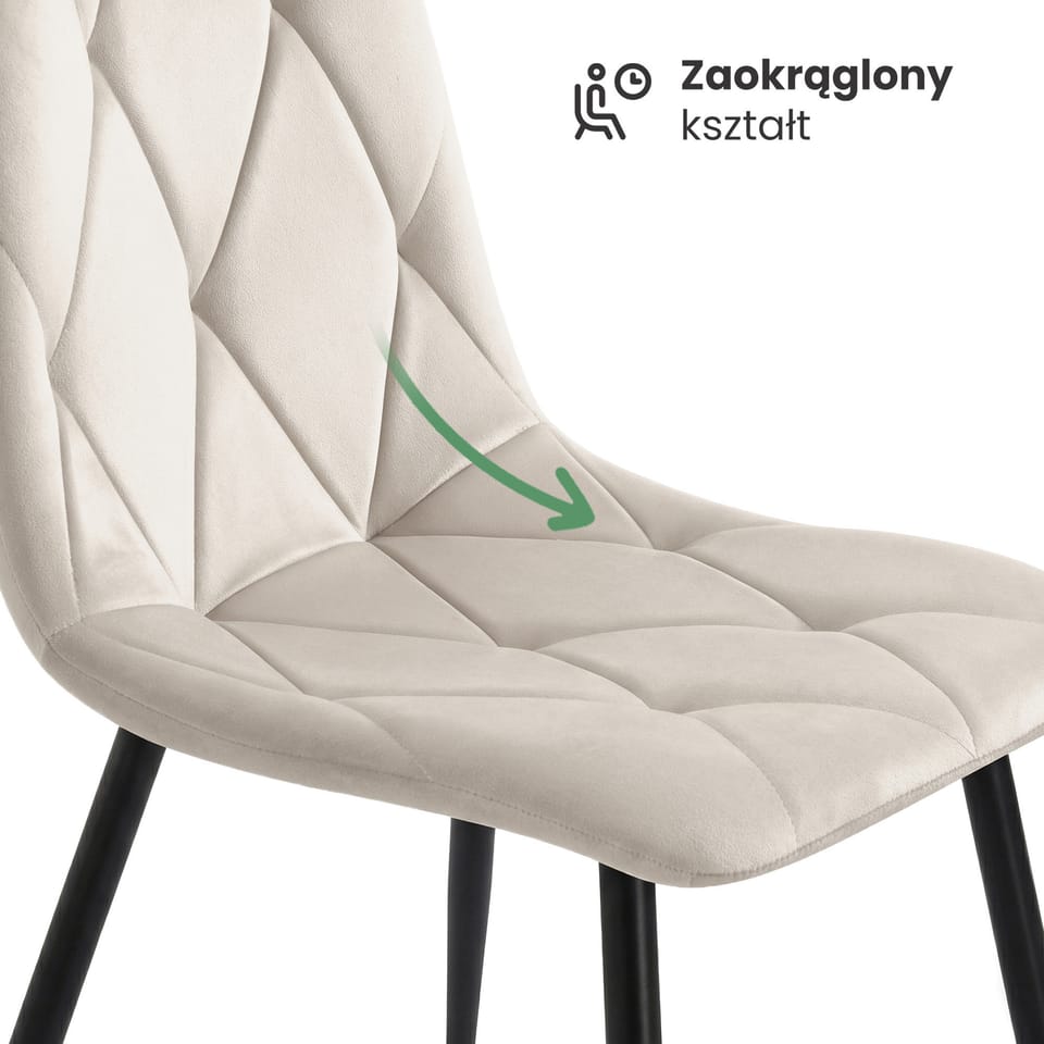 2x Welurowe krzesło tapicerowane pikowane Beżowe MILO Czarne nogi