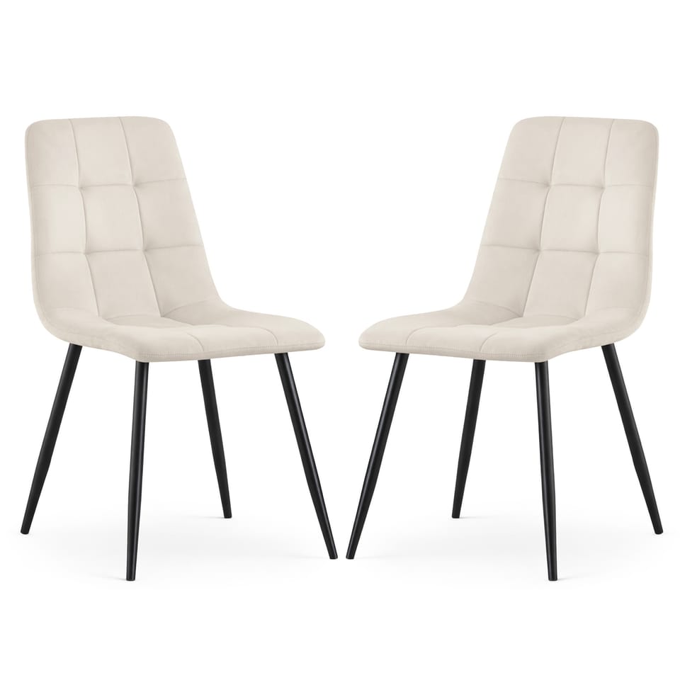 2x Welurowe krzesło tapicerowane pikowane Beżowe NERO Czarne nogi