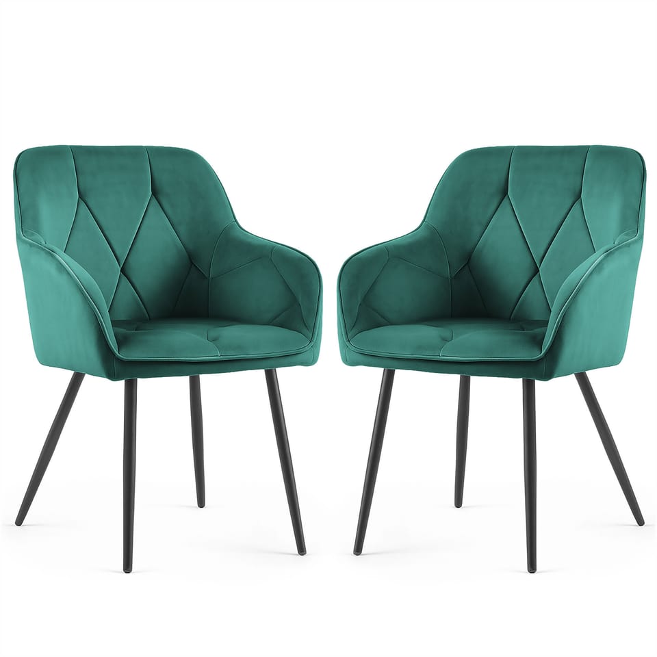 2x Welurowe krzesło tapicerowane pikowane Butelkowa Zieleń DIAMANTE Czarne nogi