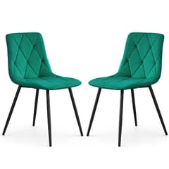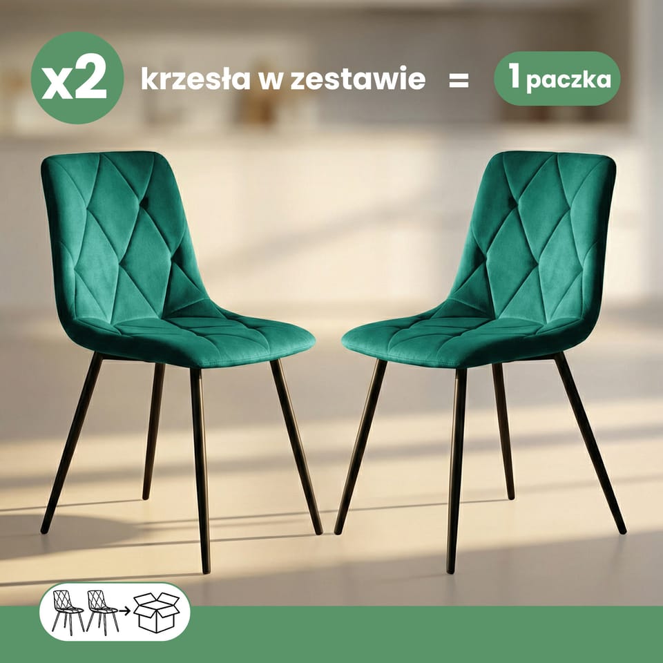 2x Welurowe krzesło tapicerowane pikowane Butelkowa Zieleń MILO Czarne nogi