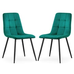 2x Welurowe krzesło tapicerowane pikowane Butelkowa Zieleń NERO Czarne nogi