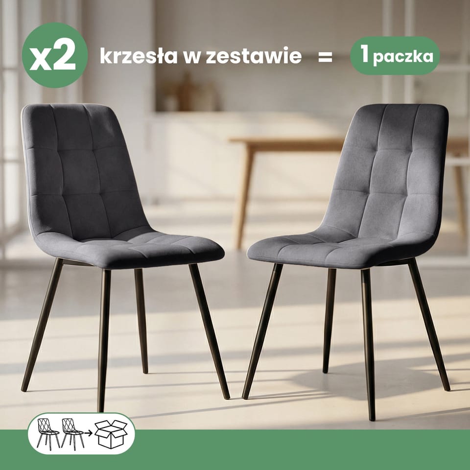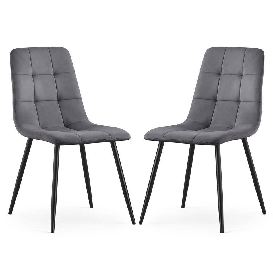 2x Welurowe krzesło tapicerowane pikowane Ciemny Grafit NERO Czarne nogi