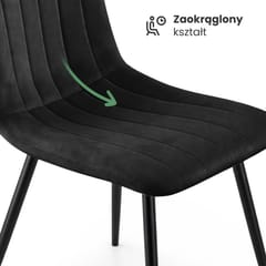 Dzięki tapicerowanemu oparciu o zaokrąglonych krawędziach, nasze krzesła nie tylko pięknie się prezentują, ale także zapewniają wysoki poziom wygody podczas siedzenia. Materiał tapicerki to welur, który doskonale łączy zalety estetyczne z użytkowymi. Jest trwały, wytrzymały, a jednocześnie przyjemnie miękki w dotyku, dzięki czemu perfekcyjnie sprawdza się w swojej roli.