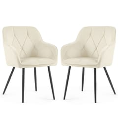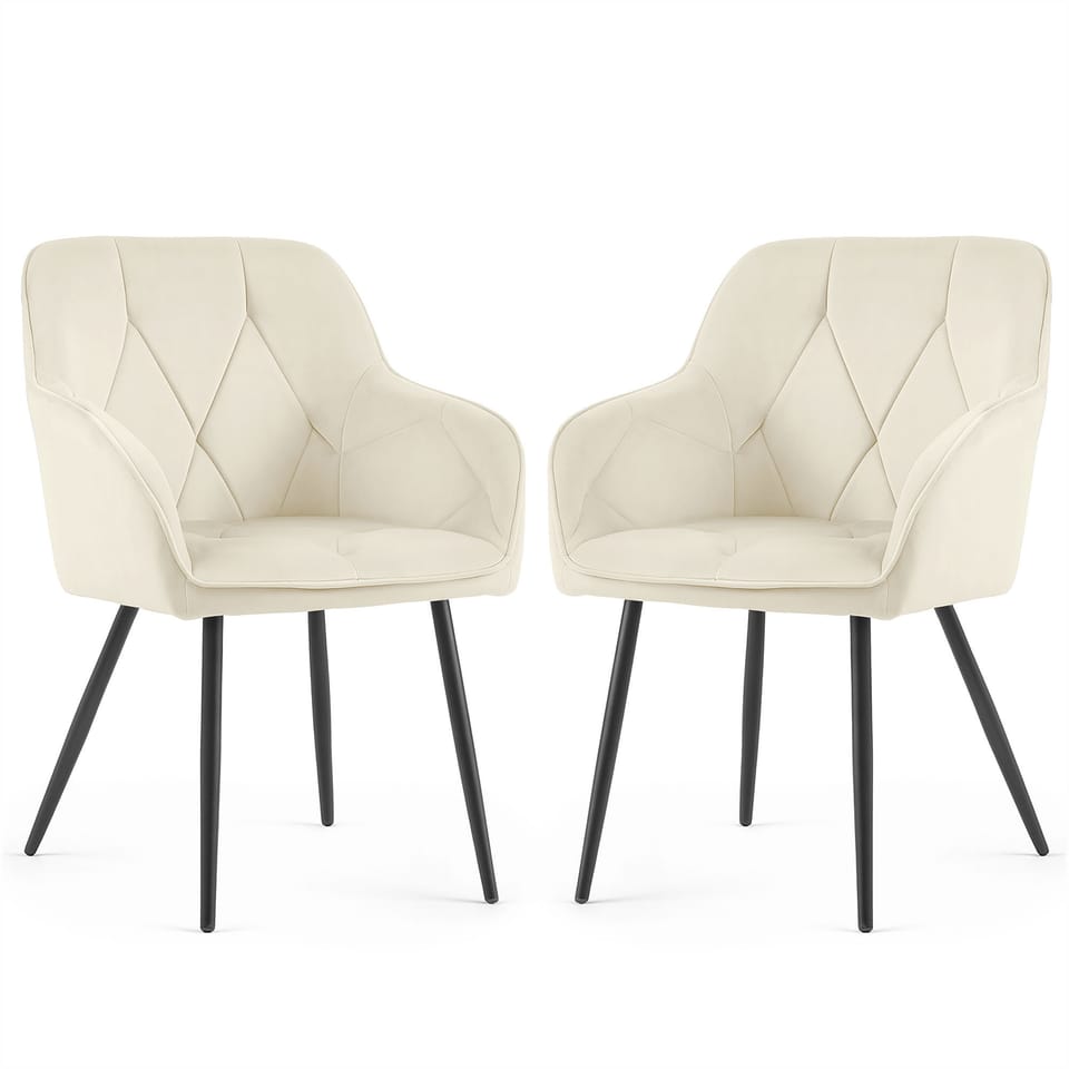 2x Welurowe krzesło tapicerowane pikowane Kremowe DIAMANTE Czarne nogi