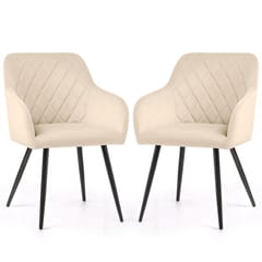 2x Welurowe krzesło tapicerowane pikowane w romby Beżowe VELTO Czarne nogi