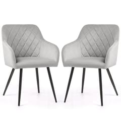 2x Welurowe krzesło tapicerowane pikowane w romby Szare VELTO Czarne nogi