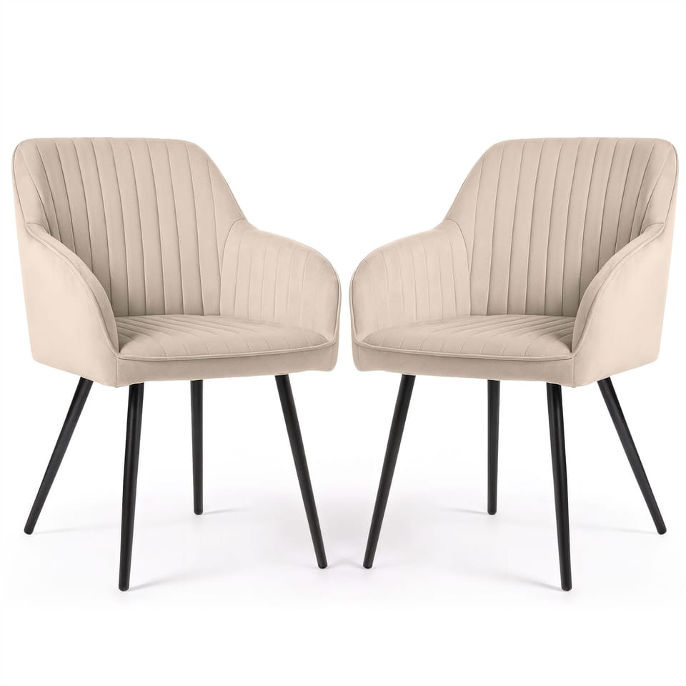 2x Welurowe krzesło tapicerowane z przeszyciami Beżowe FLORENCE Czarne nogi