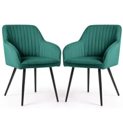 2x Welurowe krzesło tapicerowane z przeszyciami Butelkowa Zieleń FLORENCE Czarne nogi