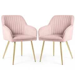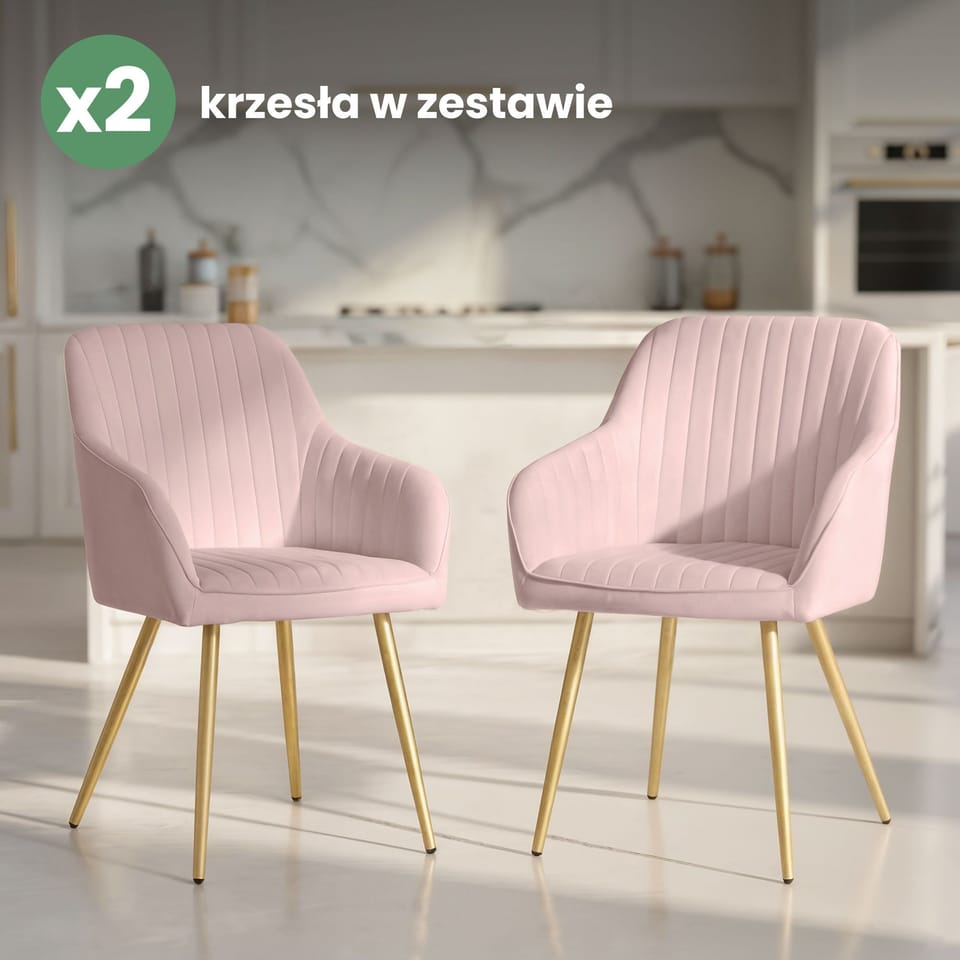 2x Welurowe krzesło tapicerowane z przeszyciami Pudrowy Róż FLORENCE Złote nogi