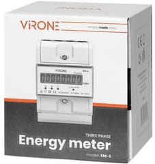 Urządzenie do dokonywania wskazań w jednostkach metrycznych (kWh), służy do bezpośredniego pomiaru mocy czynnej w układzie trójfazowym. Specjalny układ elektroniczny pod wpływem przepływającego prądu i przyłożonego napięcia generuje impulsy w ilości proporcjonalnej do pobieranej energii elektrycznej. Pobór energii w fazie sygnalizowany jest miganiem diody LED. Liczba impulsów jest przeliczana na energię pobraną, a jej wartość wskazywana jest przez wyświetlacz LCD (6+2). Zasilanie: 230V~, 50Hz, prąd bazowy: 5A, max. prąd: 80A, min. prąd: 0,25A, częstotliwość impulsów: 800 imp/kWh, klasa dokładności B, obudowa o szerokości trzech modułów, montaż na szynie DIN TH-35 mm, wyjście impulsowe: zasilanie 12~27V, prąd ?27mA, impuls = 80ms.