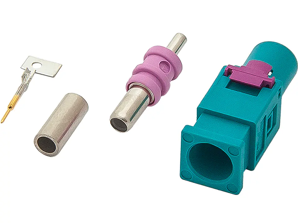 Złącze antenowe pojedyncza Fakra męska prosta do przewodu RG174.