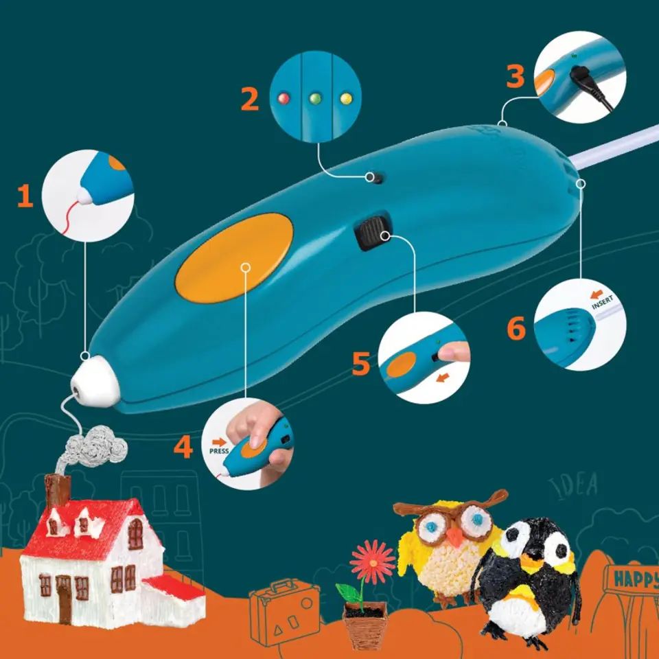 Długopis 3D 3Doodler to idealny produkt, który pozwala na budowanie obiektów 3D. Długopis rysuje podgrzanym EKO-wkładem, co daje możliwość budowania obiektów w trójwymiarze :) Aby rozpocząć zabawę wystarczy umieścić wybrany kolor wkładu w prowadnicy i po chwili można już zacząć tworzyć co tylko przyjdzie nam do głowy.