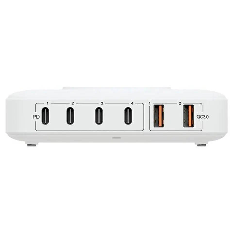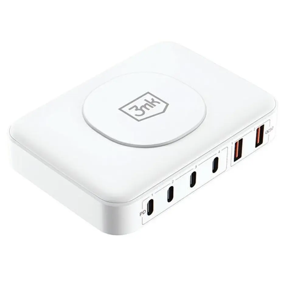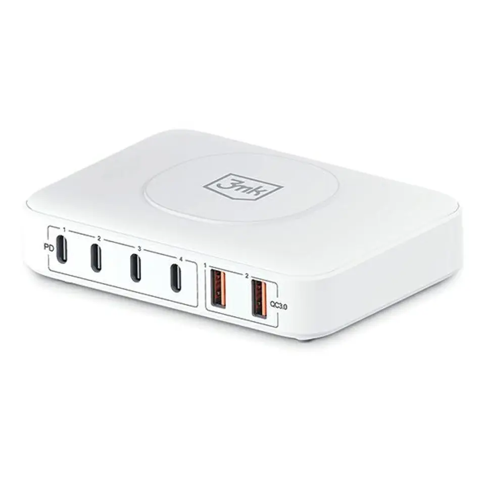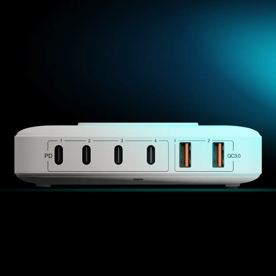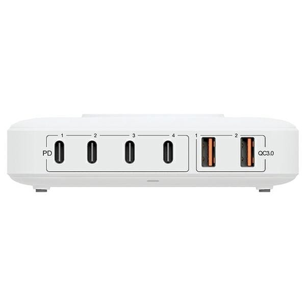 Hyper Charger PowerMax 100W™ jest wyposażona w 4 wejścia USB Type-C oraz 2 wejścia USB-A. Ponadto, ładowarka posiada dedykowane miejsce do ładowania indukcyjnego, aby zapewnić wygodne i wszechstronne ładowanie.