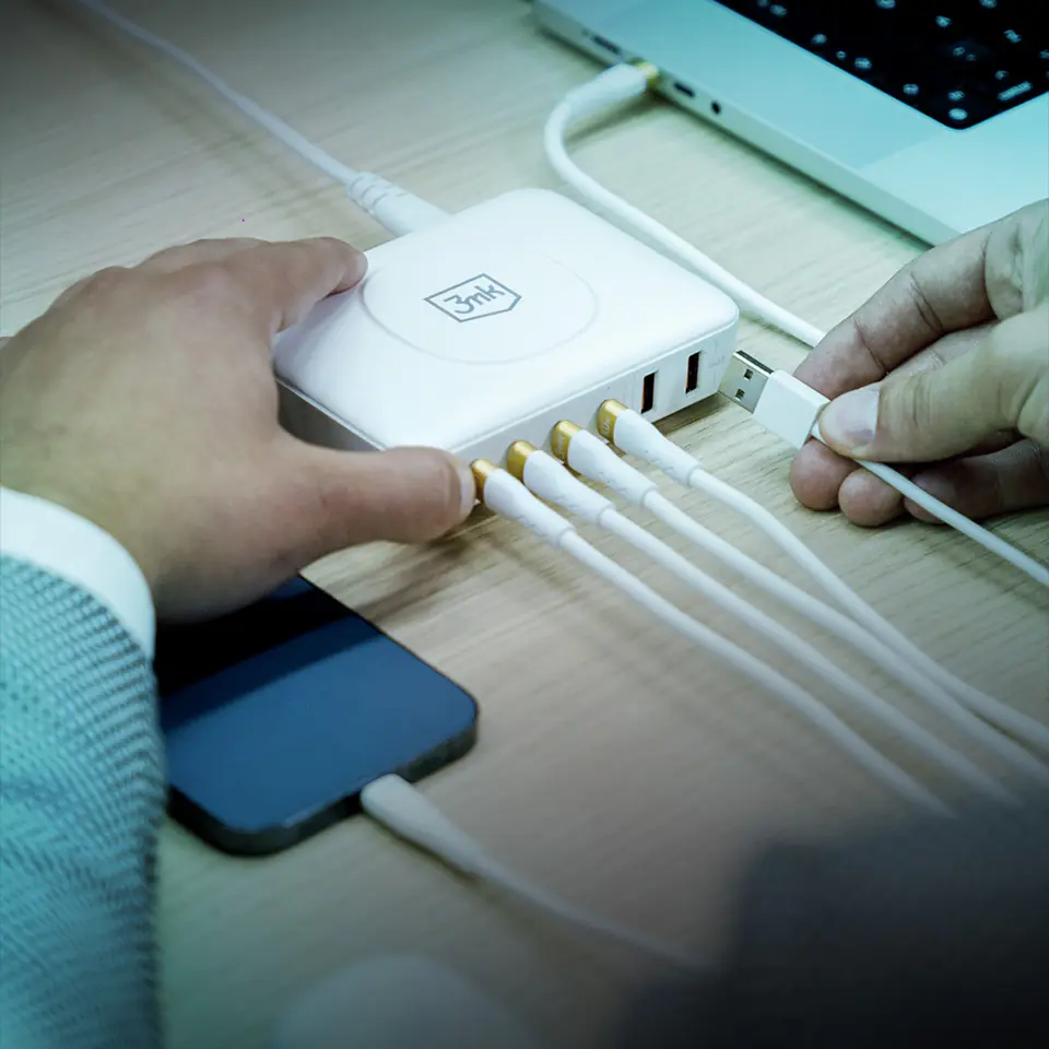 Ładowarka biurkowa Hyper Charger PowerMax 100W ™ została uzbrojona w ogromną moc i cały pakiet innowacyjnych technologii. Jest przy tym lekka, kompaktowa i elegancka. Zajmuje minimum miejsca na blacie czy podłodze. Oferuje wygodę na co dzień i w trakcie podróży. Bez problemu zmieścisz ją w walizce, plecaku czy torebce. Na pewno nie będzie Ci ciążyć. Odwdzięczy się 7 źródłami super mocy dla Ciebie i Twoich bliskich.