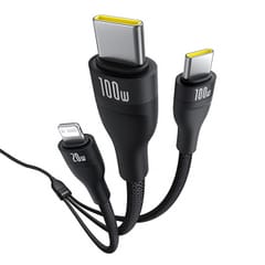 - - 3w1 Kabel przewód Flash Series 3 100W USB-C - 2x USB-C iPhone Lightning 1.5m - czarny