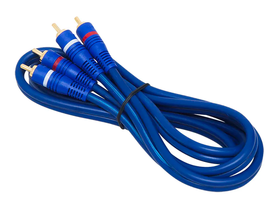 Przyłącze 2xRCA, zakończone z dwch stron dwoma pozłacanymi wtykami RCAdo samochodowych instalacji audio.