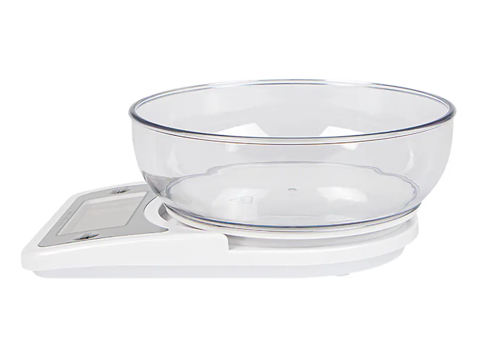 Nowoczesna i poręczna waga kuchenna KS204 z misą to niezastąpione urządzenie w każdym domu. Waga wyposażona została w duży, czytelny wyświetlacz, gumowe stopki dzięki ktrym waga nie będzie się ślizgać po powierzchni oraz kompaktowy rozmiar. Precyzyjny czujnik umożliwia pomiar z dokładnością co do 1g a funkcja tarowania ułatwia pomiar przez odjęcie wagi pojemnika.