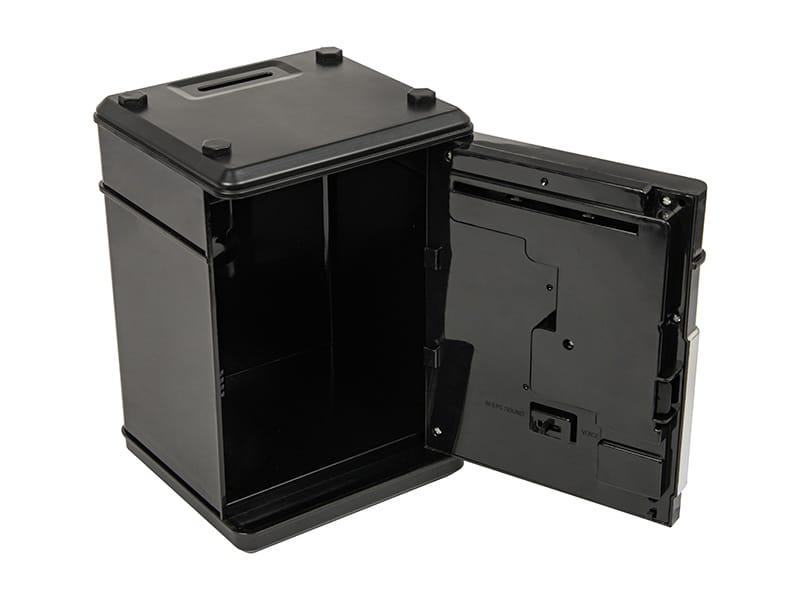 - Grube ścianki oraz solidny mechanizm zamykający, chroniący pieniądze i cenne przedmioty przed kradzieżą.