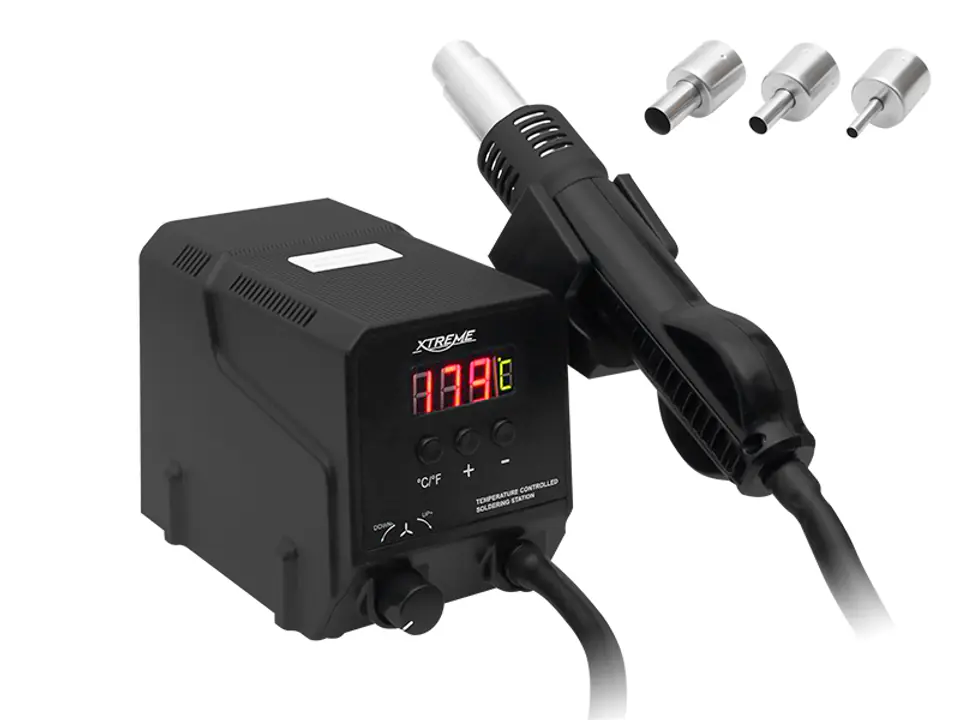 - Automatyczny system chłodzenia oraz funkcja wyłączania zasilania umożliwiają wydłużenie okresu eksploatacji elementu grzejnego i żywotności pistoletu na gorące powietrze.