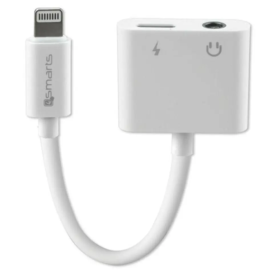 4smarts Adapter rozdzielający Lightning na Lightning + 3.5mm AUX biały/white 468673